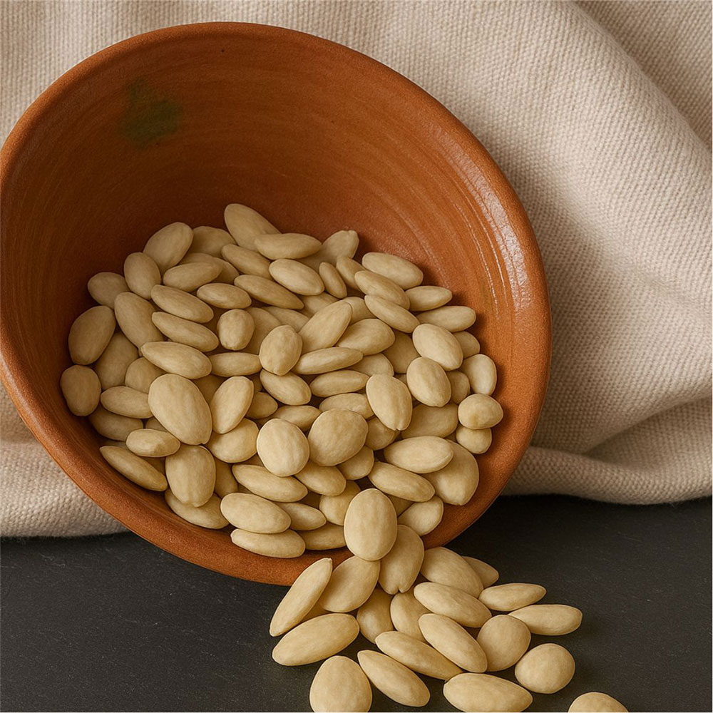 Sem pele e 100% natural, o nosso miolo de amêndoa pelada crua é ideal para quem procura sabor autêntico e versatilidade na cozinha.